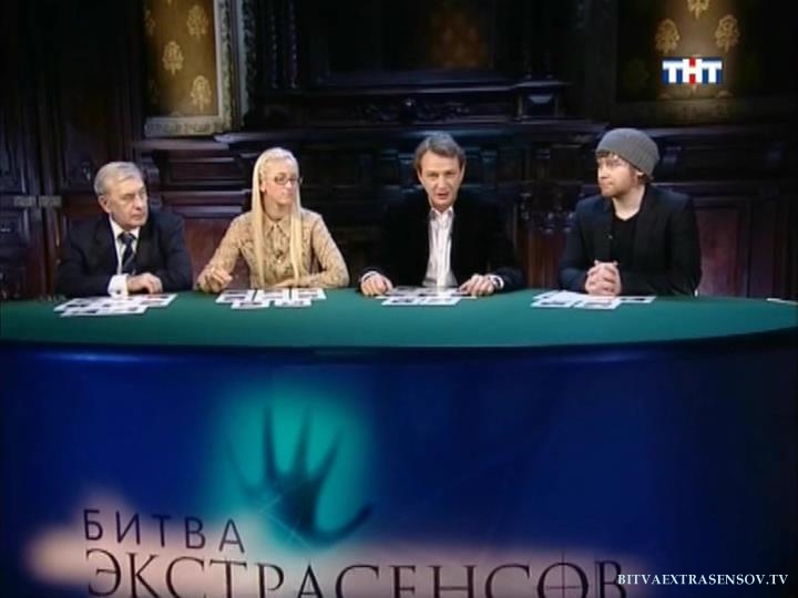 Дата эфира сентябрь 2009 года. 4 выпуск "битвы экстрасенсов". Россия. Телеканал ТНТ. Ведущий 8-го сезона - Марат Башаров