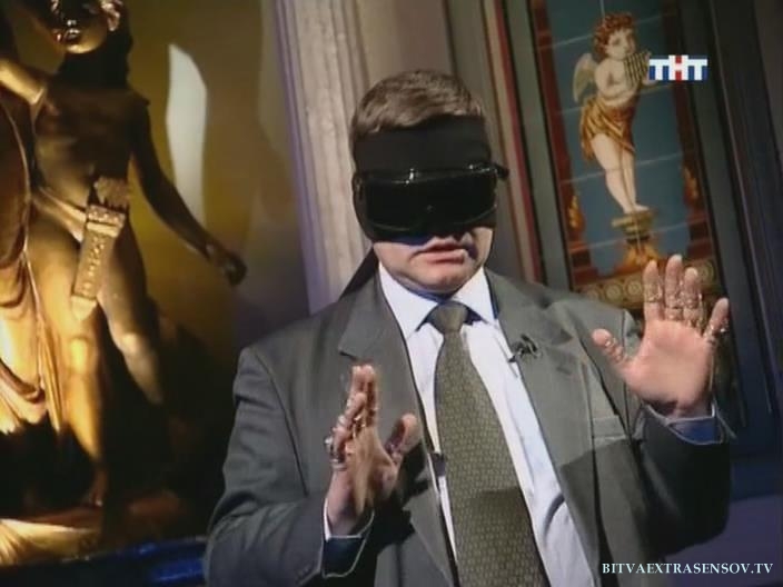 Вы смотрите новую, седьмую битву экстрасенсов. Мы продолжаем отбор людей. Смогут ли они описать человека не видя и не слыша его? На глаза экстрасенсов будет надета непроницаемая черная маска. Благодаря этому, это испытание можно пройти только с помощью паранормальных способностей.